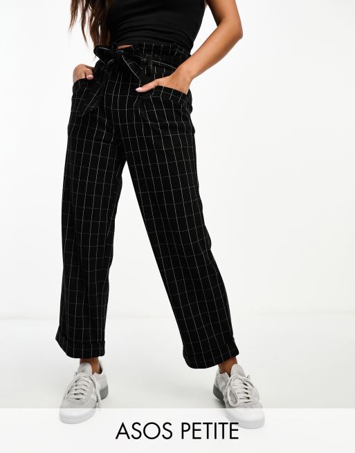 ASOS DESIGN Petite paper bag waist peg trouser in windowpane check