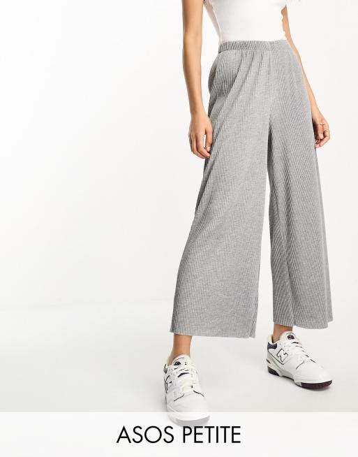 ASOS DESIGN Petite plisse wide leg trouser culottes in grey