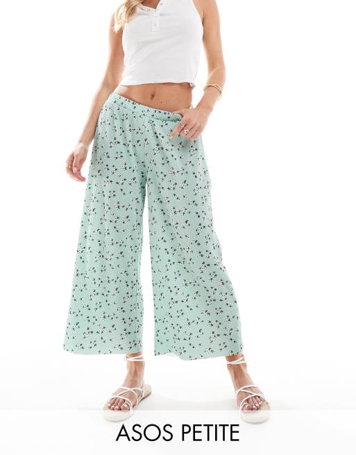 ASOS DESIGN Petite plisse wide trouser culottes in green ditsy