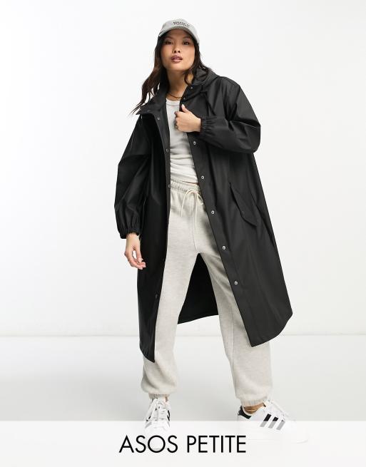 ASOS DESIGN Petite rubberised rain parka coat in black