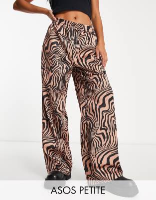 ASOS DESIGN Petite satin pull on trousers zebra print