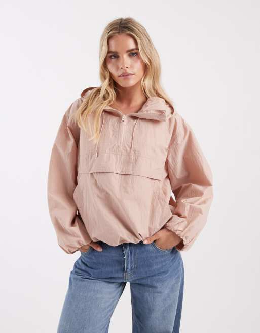 ASOS DESIGN Petite shower resistant overhead track jacket in dusty pink