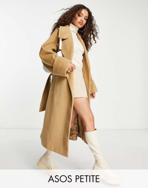ASOS DESIGN Petite smart brushed belted coat in brown