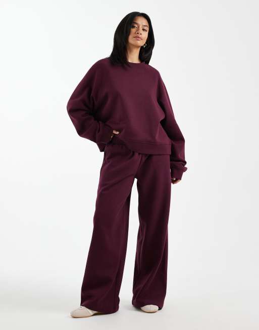 ASOS DESIGN Petite wide leg brushback jogger in plum