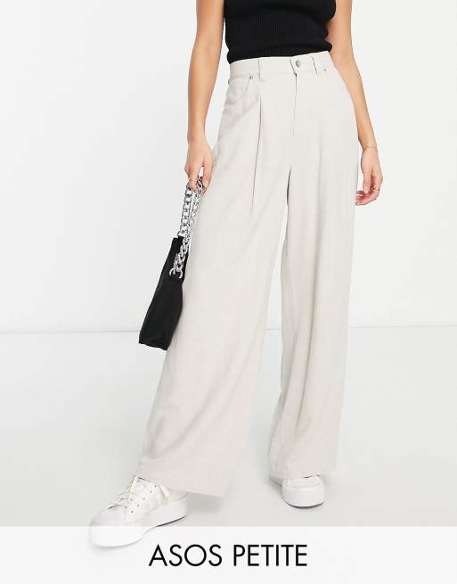 ASOS DESIGN Petite wide leg trouser with linen in oatmeal