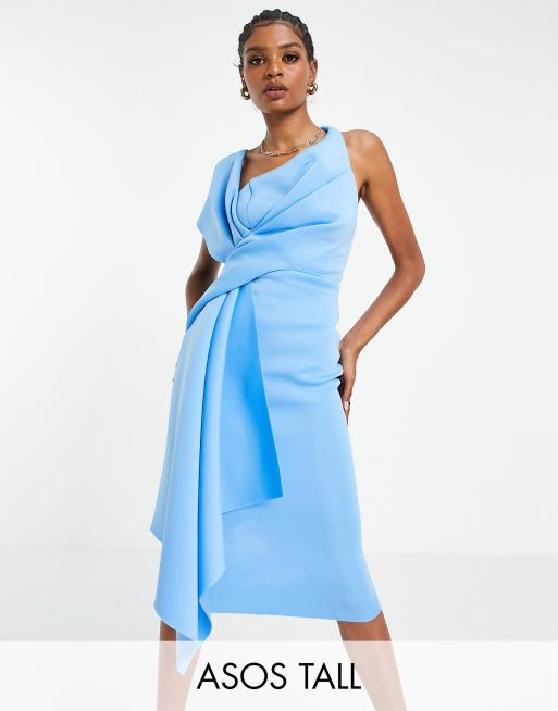 ASOS DESIGN Tall bare shoulder pencil midi dress in blue