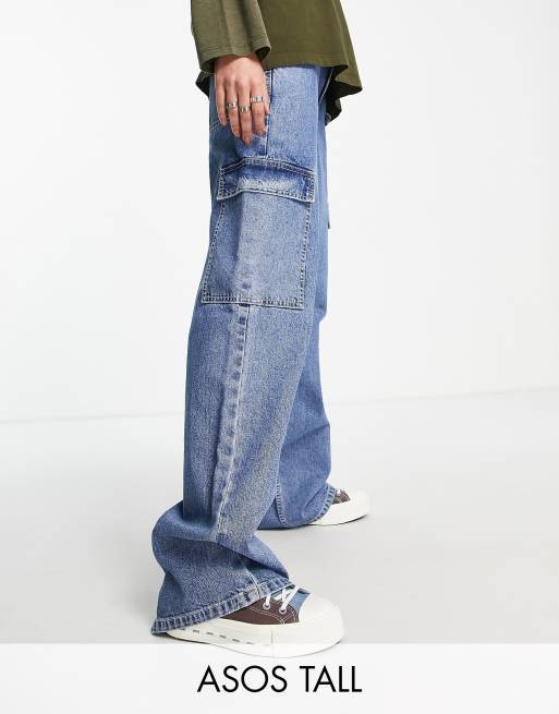 ASOS DESIGN Tall cotton blend low rise cargo jean in mid wash blue - LBLUE