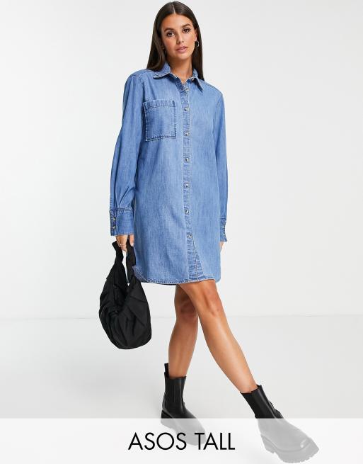 ASOS DESIGN Tall denim oversized shirt dress in midwash