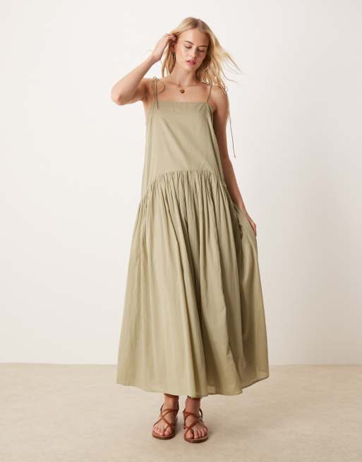 ASOS DESIGN Tall dropped waist maxi dress in putty