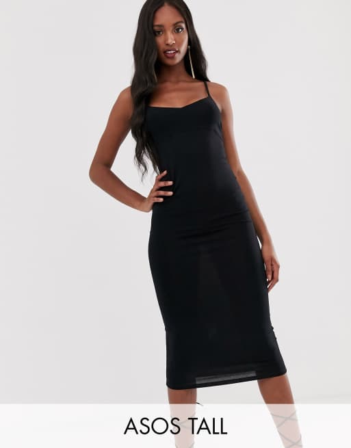 ASOS DESIGN Tall exclusive midi cami bodycon dress in black
