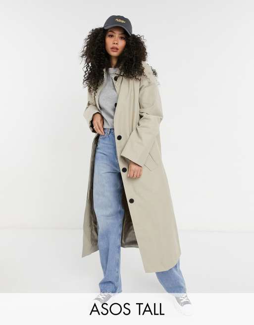 ASOS DESIGN Tall hero oversized boyfriend trench coat in stone