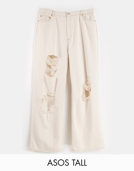 ASOS DESIGN Tall high rise 'relaxed' dad jeans in ecru with extreme rips