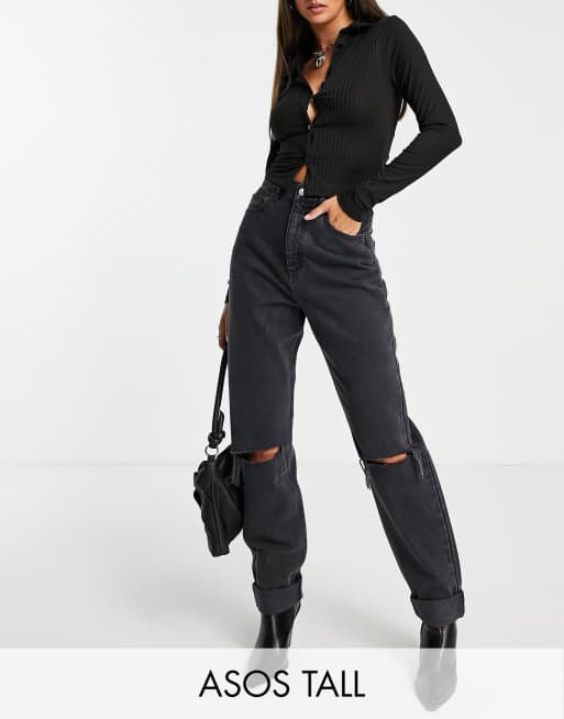 ASOS DESIGN Tall high waist 'slouchy' mom jeans in washed black with rips