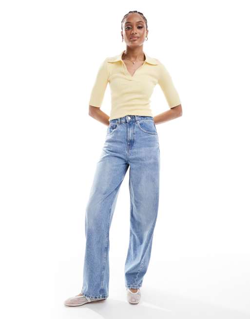 ASOS DESIGN Tall high waisted barrel leg jeans in light mid blue
