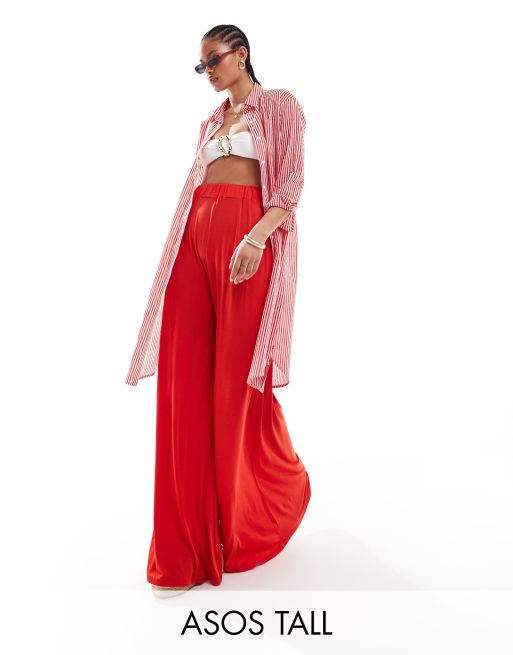 ASOS DESIGN Tall jersey palazzo beach trouser in red