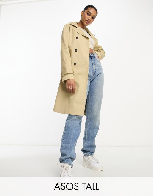 ASOS DESIGN Tall midi trench coat in stone