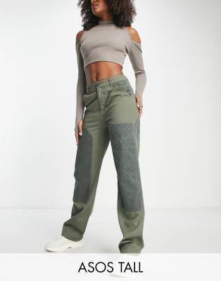 ASOS DESIGN Tall minimal cargo trouser with patchwork cord in khaki