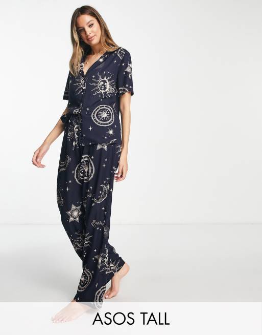 ASOS DESIGN Tall modal horoscope shirt & trouser pyjama set in navy
