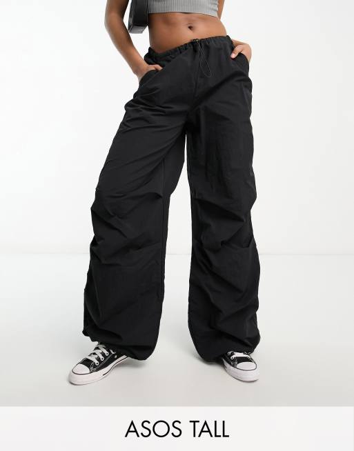 ASOS DESIGN Tall parachute cargo trouser in black