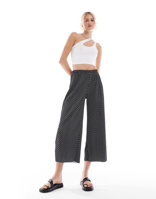ASOS DESIGN Tall plisse wide trouser culottes in polka dot