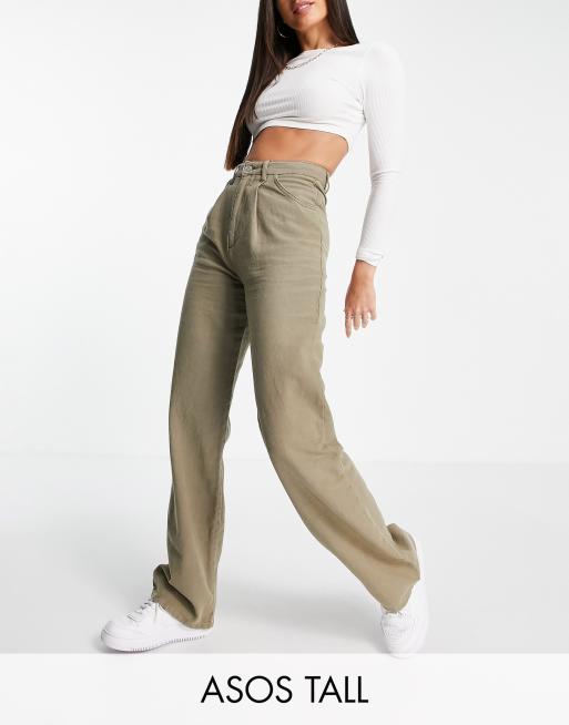 ASOS DESIGN Tall 'relaxed' dad trouser in khaki cheesecloth