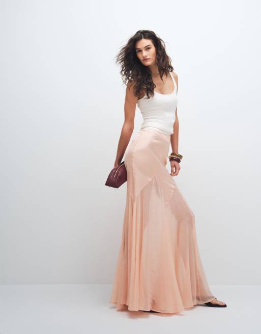 ASOS DESIGN Tall satin and chiffon mix fishtail skirt in peach
