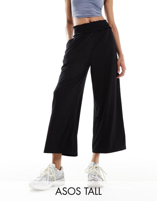 ASOS DESIGN Tall shirred waist cropped culotte trouser in black