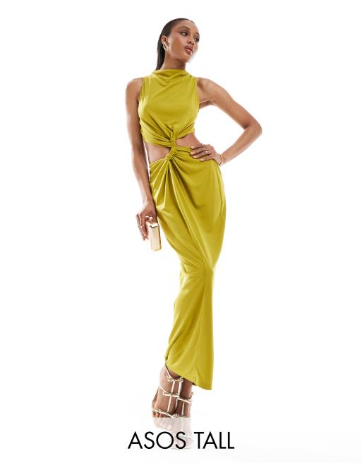ASOS DESIGN Tall slinky knot detail cut out midi dress in ochre