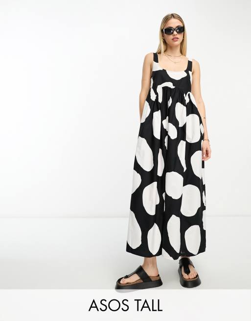 ASOS DESIGN Tall square neck midi smock sundress in large mono abstract spot