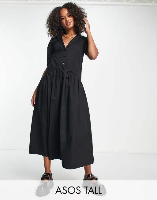 ASOS DESIGN Tall twill collared button midi smock dress in black