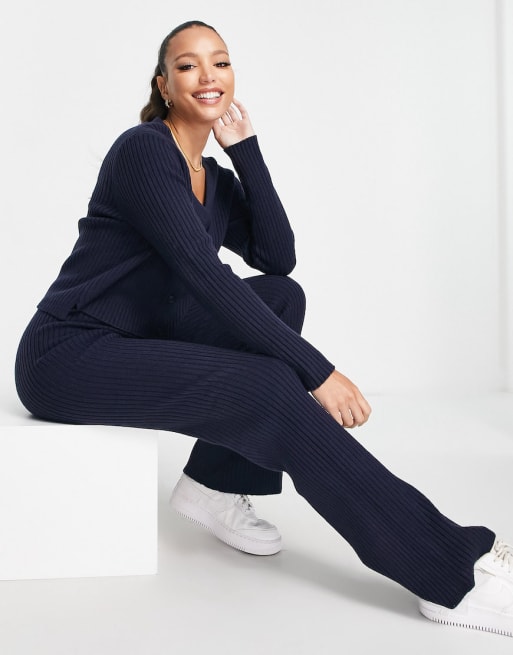 ASOS DESIGN Tall v neck cardigan and knitted trousers in navy
