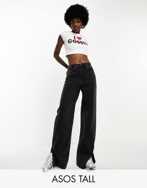 ASOS DESIGN Tall wide leg dad jeans with split in washed black