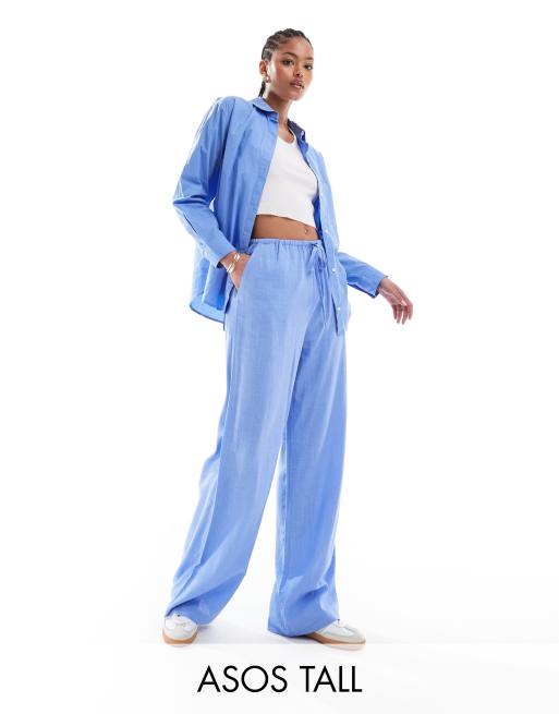 ASOS DESIGN Tall wide leg pull on trouser with linen in blue