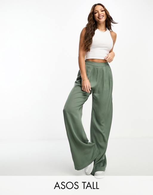 ASOS DESIGN Tall wide leg trouser in dark green