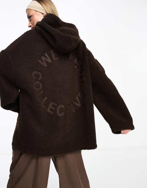 ASOS DESIGN Weekend Collective oversized borg hoody in chocolate brown