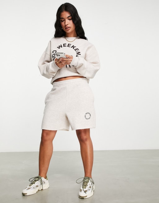 ASOS Weekend Collective oversized tracksuit with logo in oatmeal marl