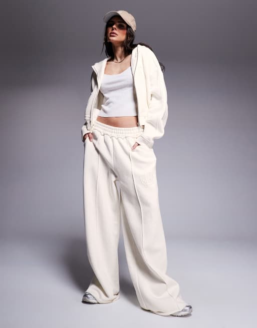 Weekend Collective co-ord zip through cropped hoodie and wide leg jogger in cream