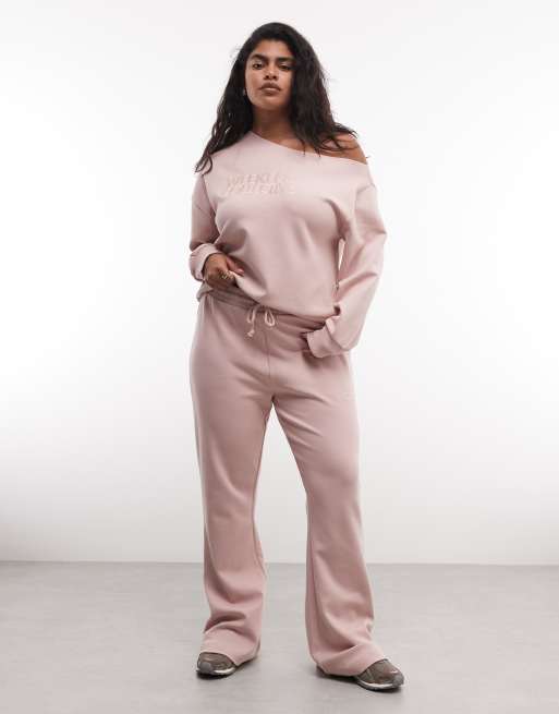 Weekend Collective Curve co-ord interlock flared trouser in dusky pink