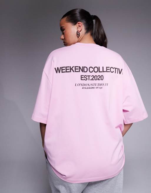 Weekend Collective Curve Icon oversized t-shirt with bold font back graphic in pink
