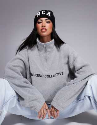Weekend Collective half zip borg fleece with logo in grey marl