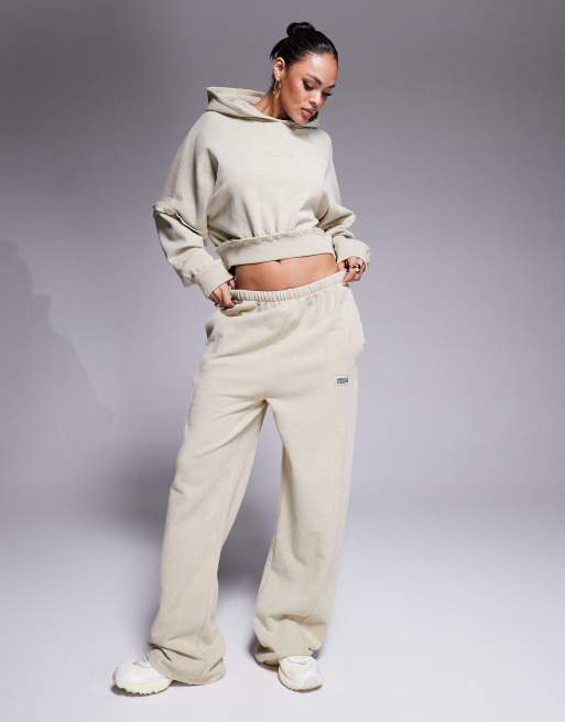 Weekend Collective hoodie and jogger co-ord with hilo exposed seam detail in washed stone