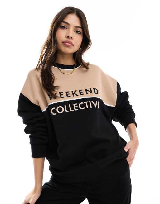Weekend Collective oversized colour block sweatshirt in camel and black