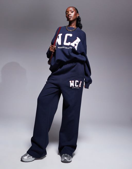Weekend Collective oversized jogger and sweatshirt with varsity logo in navy