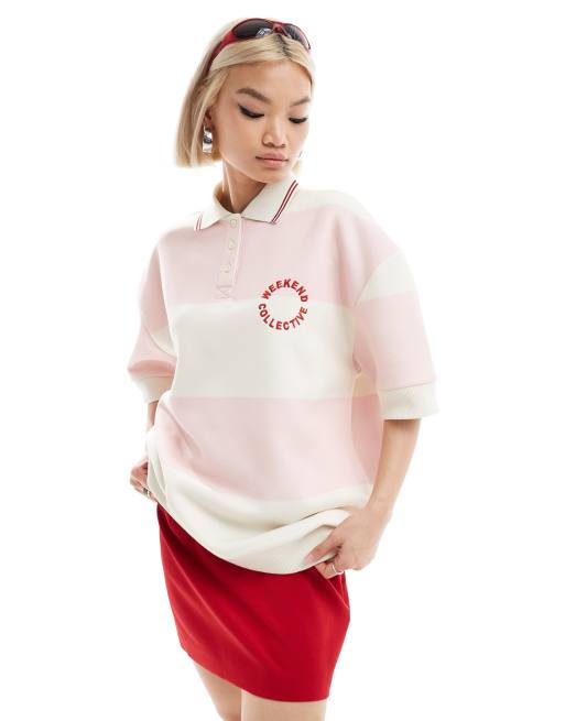 Weekend Collective pink striped polo shirt