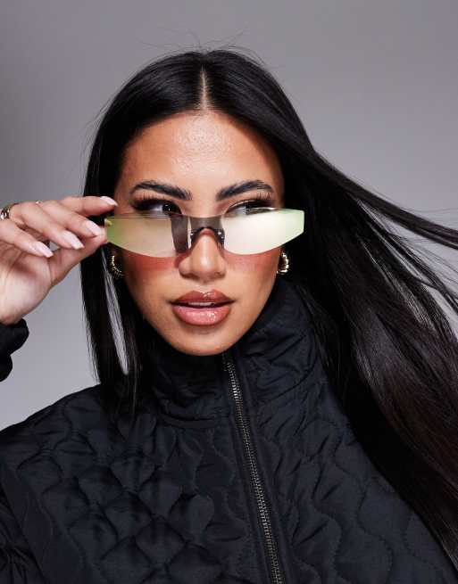 Weekend Collective rose gold mirror sunglasses with logo in black