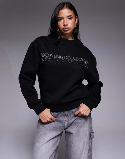 Weekend Collective sweatshirt with hotfix diamante graphic in black