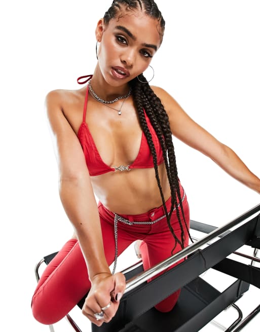 ASYOU denim bralet co-ord in red