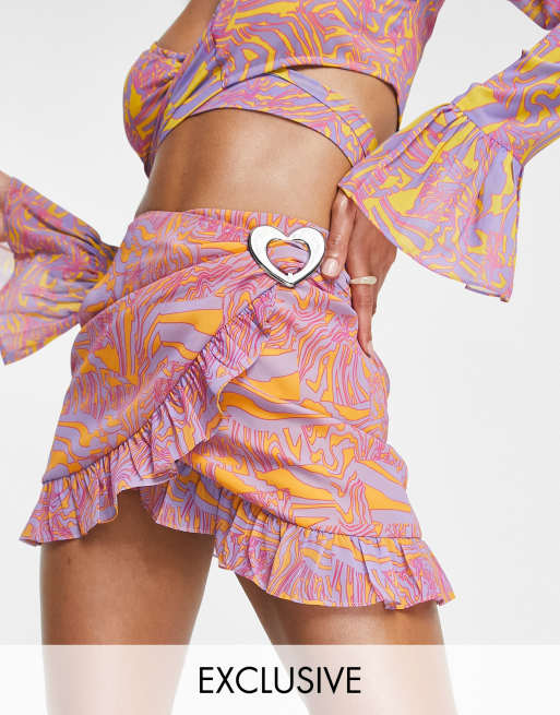 ASYOU frill edge wrap skirt in neon animal print
