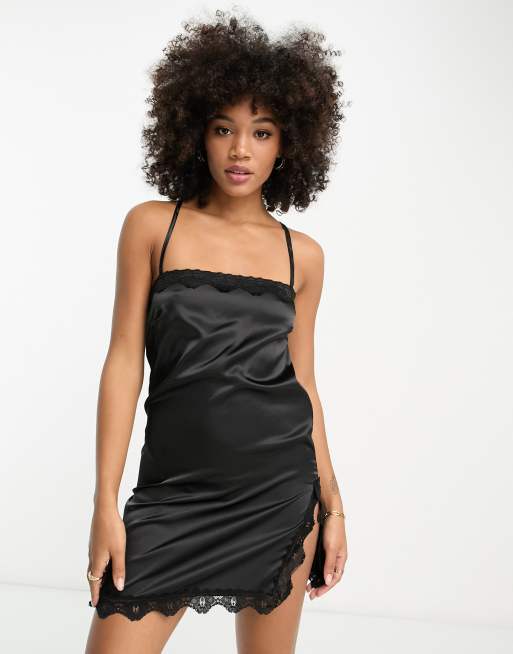 ASYOU satin lace detail cami dress in black