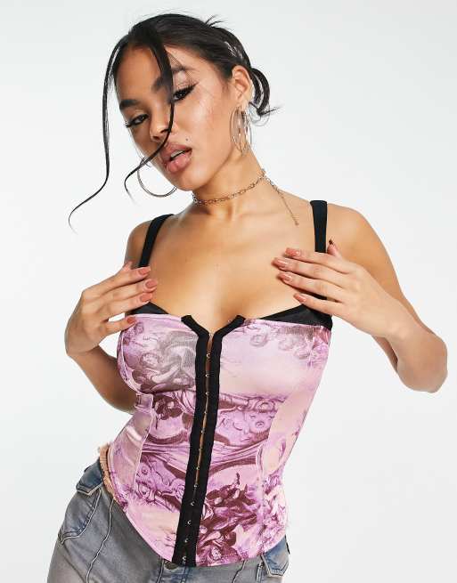ASYOU stretch satin bust insert corset top in renaissance print